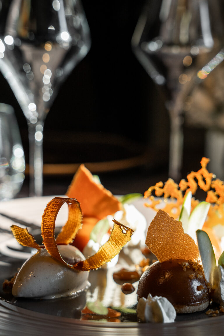 Le Soufflé chaud à l’orange et cointreau et son sorbet Kalamansi